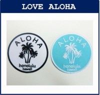 トップ > アイロンアップリケ > 丸型シリーズ > ALOHA ヤシ honolulu-hawaii 白ネイビー 大 (丸型)