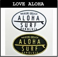 トップ > アイロンアップリケ > 丸型シリーズ > ALOHA SURF HONOLULU 黒ゴールド (楕円型)