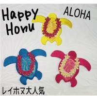 ハワイアンアイロンアップリケ 【ホヌレイ イエロー】